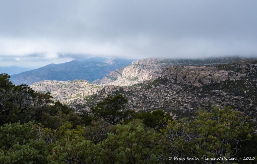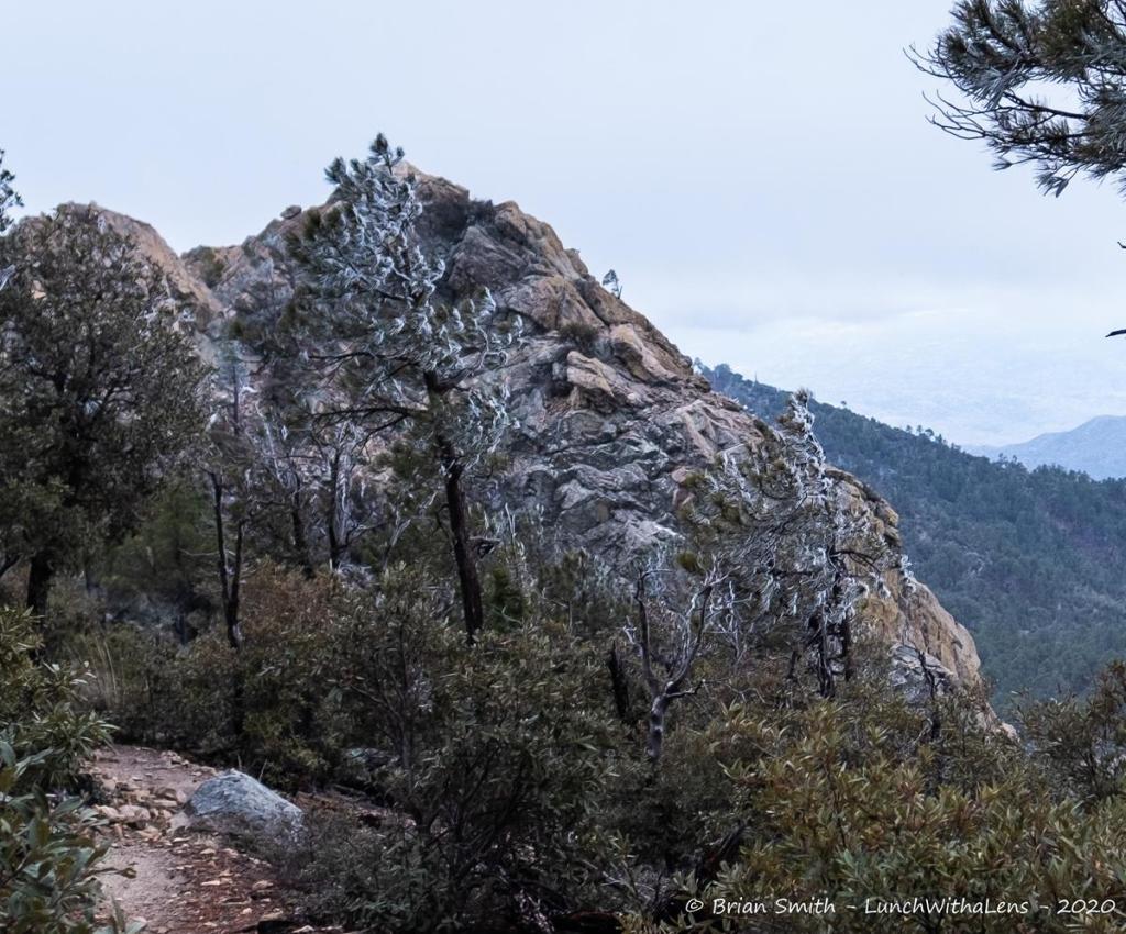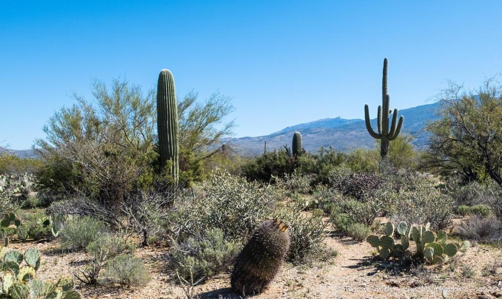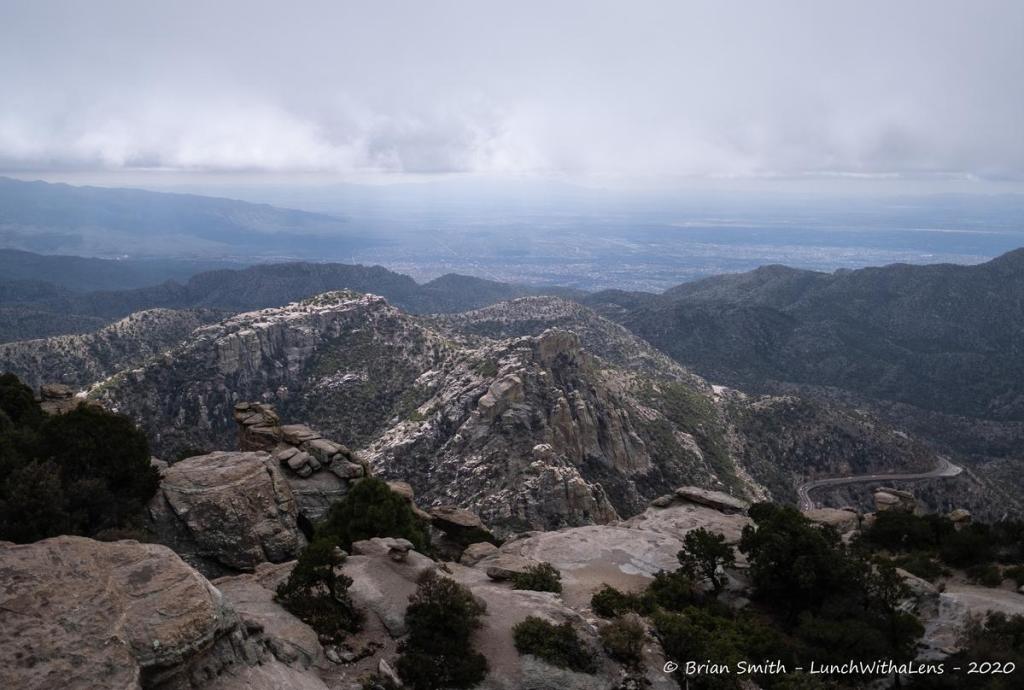 Day 2 we started with a hike at Catalina State Park, then lunch at Plaza Escondida. We made our way up to Mt Lemmon, stopping for a very cold hike – Incinerator Ridge Trail to Barnum Rock and Leopold Point. Our Observatory plans didn’t work out as freezing fog hung over the mountain. Instead, we had the tour around to see the different telescopes and also how the observatory is part of the Near-Earth Object Studies – looking for things that might hit the earth. The start shots were from the Windy Point Vista, where we stopped on the way down as the sky had cleared.